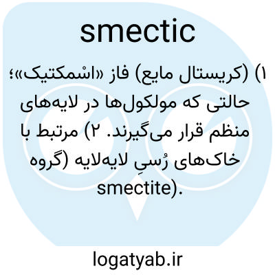 ۱) (کریستال مایع) فاز «اسْمکتیک»؛ حالتی که مولکول‌ها در لایه‌های منظم قرار می‌گیرند. ۲) مرتبط با خاک‌های رُسیِ لایه‌لایه (گروه smectite).