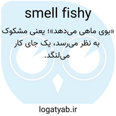 📌 مشکوک یا بدگمان باشید، همانطور که در توضیح او آمده است: «او قطعاً بوی ماهی میدهد؛ حدس من این است که او دروغ میگوید.» این اصطلاح به این واقعیت اشاره دارد که ماهی تازه هیچ بویی ندارد، اما ماهیهای کهنه یا گندیده بوی خوبی دارند. [اوایل دهه ۱۸۰۰]