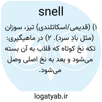 ۱) (قدیمی/اسکاتلندی) تیز، سوزان (مثل بادِ سرد). ۲) در ماهیگیری: تکه نخ کوتاه که قلاب به آن بسته می‌شود و بعد به نخ اصلی وصل می‌شود.