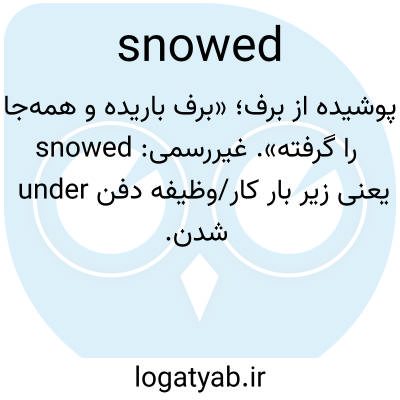 پوشیده از برف؛ «برف باریده و همه‌جا را گرفته». غیررسمی: snowed under یعنی زیر بار کار/وظیفه دفن شدن.