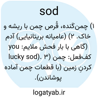 ۱) چمن‌کَنده، قُرص چمن با ریشه و خاک. ۲) (عامیانه بریتانیایی) آدم (گاهی با بار فحش ملایم: you lucky sod). ۳) فعل: چمن‌کف کردنِ زمین (با قطعات چمن آماده پوشاندن).