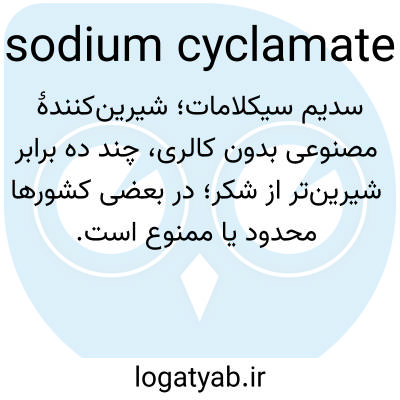 📌 پودری سفید، بلوری و محلول در آب، NaC6NH12SO3، که به عنوان شیرینکننده استفاده میشود: در سال ۱۹۷۰ توسط FDA ممنوع شد.