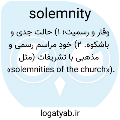 وقار و رسمیت؛ ۱) حالت جدی و باشکوه. ۲) خودِ مراسم رسمی و مذهبی با تشریفات (مثل «solemnities of the church»).