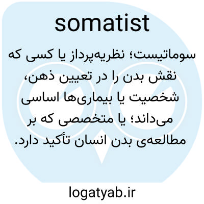 سوماتیست، سوماتیست، اسم. کسی که فقط وجود موجودات مادی را میپذیرد.