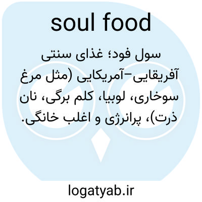 سول فود؛ غذای سنتی آفریقایی–آمریکایی (مثل مرغ سوخاری، لوبیا، کلم برگی، نان ذرت)، پرانرژی و اغلب خانگی.