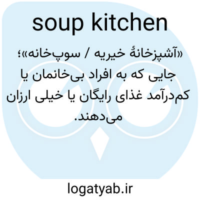 «آشپزخانهٔ خیریه / سوپ‌خانه»؛ جایی که به افراد بی‌خانمان یا کم‌درآمد غذای رایگان یا خیلی ارزان می‌دهند.