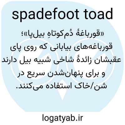 📌 هر یک از چندین وزغ شبزی از خانوادهی Pelobatidae، که در نیمکرهی شمالی رایج هستند و با برآمدگی شاخی و بیلمانندی روی هر پای عقب برای نقب زدن در زیر خاک مشخص میشوند.