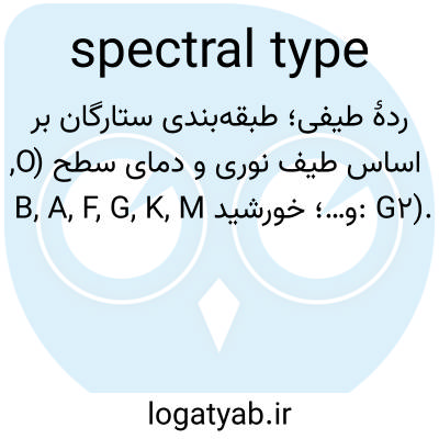 📌 دسته‌ای برای طبقه‌بندی یک ستاره، به عنوان ستاره A یا ستاره G، بر اساس ویژگی‌های طیف آن، شکل آن به عنوان تابعی از دما و طول موج و طیف جذبی آن، که نشان‌دهنده دمای سطح ستاره و وجود اتم‌ها یا مولکول‌های خاص در لایه‌های بیرونی آن است: انواع اصلی عبارتند از انواع طیفی O، B، A، F، G، K و M.