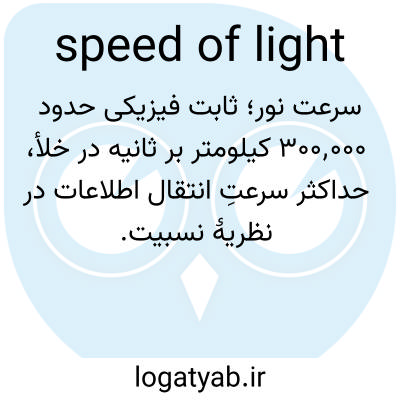 📌 فیزیک، اپتیک، یک ثابت اساسی جهانی، سرعتی که نور و تمام اشکال تابش الکترومغناطیسی در خلاء با آن حرکت میکنند، که به صورت استاندارد ۱۸۶۲۸۲.۴ مایل در ثانیه (۲۹۹۷۹۲۴۵۸ متر در ثانیه) بیان میشود.