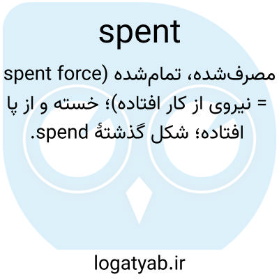 مصرف‌شده، تمام‌شده (spent force = نیروی از کار افتاده)؛ خسته و از پا افتاده؛ شکل گذشتهٔ spend.