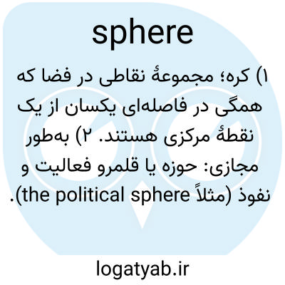 ۱) کره؛ مجموعهٔ نقاطی در فضا که همگی در فاصله‌ای یکسان از یک نقطهٔ مرکزی هستند. ۲) به‌طور مجازی: حوزه یا قلمرو فعالیت و نفوذ (مثلاً the political sphere).