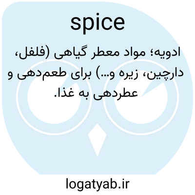 📌 هر یک از دستههای مواد تند یا معطر با منشأ گیاهی، مانند فلفل، دارچین یا میخک، که به عنوان چاشنی، نگهدارنده و غیره استفاده میشوند.