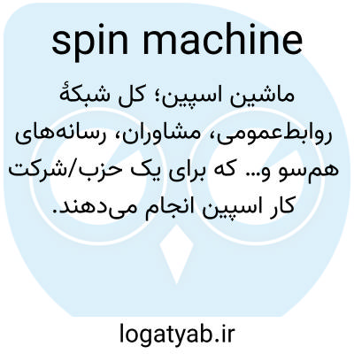 ماشین اسپین؛ کل شبکهٔ روابط‌عمومی، مشاوران، رسانه‌های هم‌سو و… که برای یک حزب/شرکت کار اسپین انجام می‌دهند.