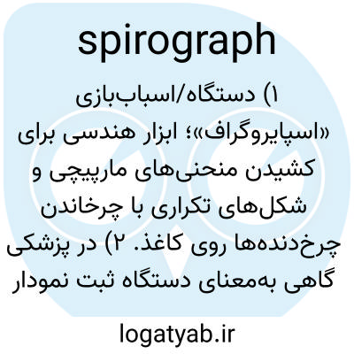 ۱) دستگاه/اسباب‌بازی «اسپایروگراف»؛ ابزار هندسی برای کشیدن منحنی‌های مارپیچی و شکل‌های تکراری با چرخاندن چرخ‌دنده‌ها روی کاغذ. ۲) در پزشکی گاهی به‌معنای دستگاه ثبت نمودار تنفسی هم می‌آید، ولی امروزه بیشتر spirometer به‌کار می‌رود.