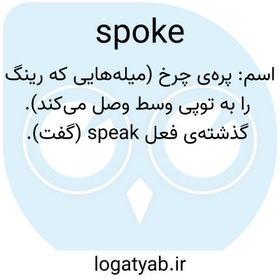 اسم: پره‌ی چرخ (میله‌هایی که رینگ را به توپی وسط وصل می‌کند). گذشته‌ی فعل speak (گفت).