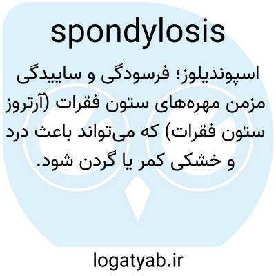 اسپوندیلوز؛ فرسودگی و ساییدگی مزمن مهره‌های ستون فقرات (آرتروز ستون فقرات) که می‌تواند باعث درد و خشکی کمر یا گردن شود.