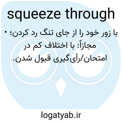 📌 همچنین، به زور کنار رفتن. موفق شدن برای عبور، پیروزی یا زنده ماندن با اختلاف کم، مانند «ما از دور دوم پلیآف به زور عبور کردیم»، یا «غذای کافی در کابین ذخیره شده بود تا بتوانیم تا پایان طوفان به زور عبور کنیم». این اصطلاح از «فشردن» به معنای «موفق شدن از طریق فشردهسازی» استفاده میکند. [حدود ۱۷۰۰] همچنین به «squeak by» مراجعه کنید.
