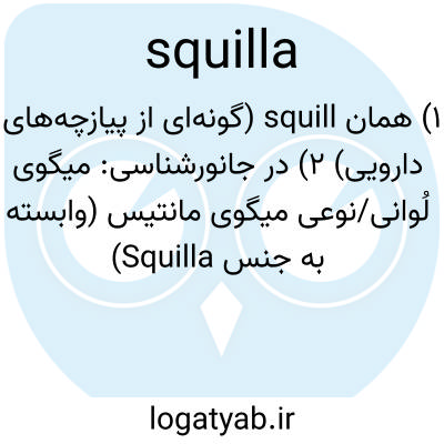 ۱) همان squill (گونه‌ای از پیازچه‌های دارویی) ۲) در جانورشناسی: میگوی لُوانی/نوعی میگوی مانتیس (وابسته به جنس Squilla)