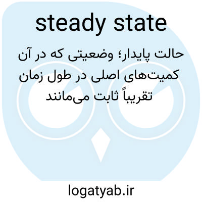📌 وضعیتی از یک سیستم یا دستگاه فیزیکی که با گذشت زمان تغییر نمیکند، یا اینکه در آن هر تغییر به طور مداوم توسط تغییر دیگر متعادل میشود، مانند وضعیت پایدار یک سیستم در حال تعادل.