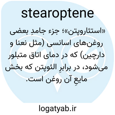 «استئاروپتن»؛ جزء جامدِ بعضی روغن‌های اسانسی (مثل نعنا و دارچین) که در دمای اتاق متبلور می‌شود، در برابرِ الئوپتن که بخش مایعِ آن روغن است.
