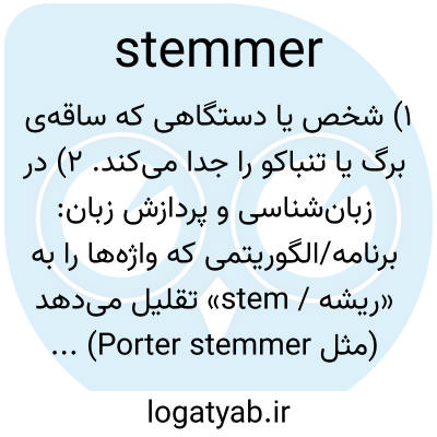 ۱) شخص یا دستگاهی که ساقه‌ی برگ یا تنباکو را جدا می‌کند. ۲) در زبان‌شناسی و پردازش زبان: برنامه/الگوریتمی که واژه‌ها را به «ریشه / stem» تقلیل می‌دهد (مثل Porter stemmer).