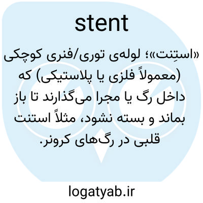 📌 پزشکی/دارویی، یک لوله کوچک و قابل انبساط که برای قرار دادن در رگ مسدود شده یا قسمت دیگری از بدن استفاده میشود.