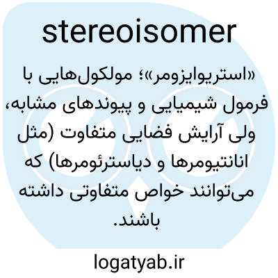 «استریوایزومر»؛ مولکول‌هایی با فرمول شیمیایی و پیوندهای مشابه، ولی آرایش فضایی متفاوت (مثل انانتیومرها و دیاسترئومرها) که می‌توانند خواص متفاوتی داشته باشند.