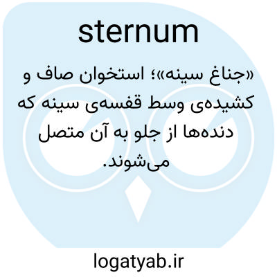 📌 کالبدشناسی، جانورشناسی، استخوان یا مجموعهای از استخوانها که در امتداد خط میانی قسمت شکمی بدن اکثر مهرهداران امتداد دارد و در انسان از یک استخوان صاف و باریک متصل به ترقوهها و دندههای حقیقی تشکیل شده است؛ استخوان سینه.