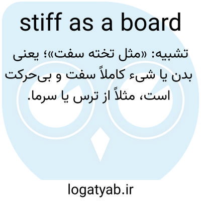 📌 همچنین، سفت و سخت مانند سیخ. انعطاف‌ناپذیر، کاملاً رسمی، خم‌نشدنی، مانند این جمله: «این پارچه مثل تخته سفت است؛ چه اتفاقی برایش افتاد؟» یا «او آنجا ایستاده بود، سفت و سخت مثل سیخ، حاضر نبود ذره‌ای کوتاه بیاید». تخته در تشبیه اول برای سفتی، یک تخته چوب است؛ تشبیه دوم، که به ابزار آهنی مورد استفاده برای هل دادن کنده‌ها در آتش اشاره دارد، به اواخر دهه ۱۷۰۰ میلادی برمی‌گردد.