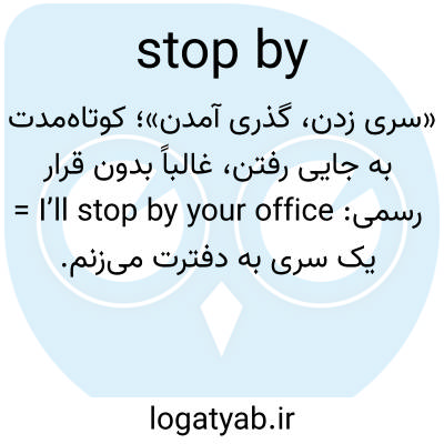 «سری زدن، گذری آمدن»؛ کوتاه‌مدت به جایی رفتن، غالباً بدون قرار رسمی: I’ll stop by your office = یک سری به دفترت می‌زنم.