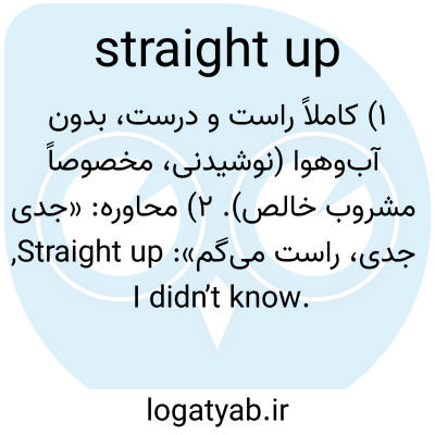 ۱) کاملاً راست و درست، بدون آب‌وهوا (نوشیدنی، مخصوصاً مشروب خالص). ۲) محاوره: «جدی جدی، راست می‌گم»: Straight up, I didn’t know.