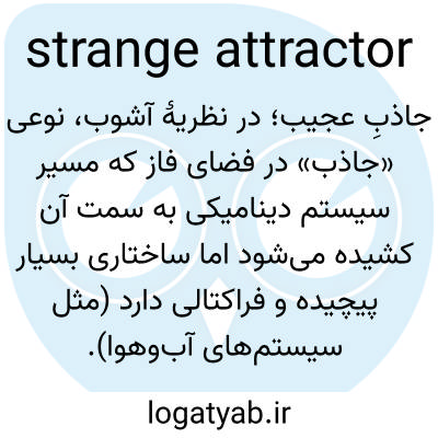 📌 فیزیک، یک حالت یا رفتار پایدار و غیر تناوبی که توسط برخی سیستمهای دینامیکی، به ویژه سیستمهای آشفته، نشان داده میشود و میتواند به عنوان یک الگوی غیر تکراری در فضای فاز سیستم نمایش داده شود.