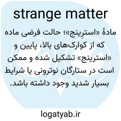 مادهٔ «استرِینج»؛ حالت فرضی ماده که از کوارک‌های بالا، پایین و «استرینج» تشکیل شده و ممکن است در ستارگان نوترونی یا شرایط بسیار شدید وجود داشته باشد.