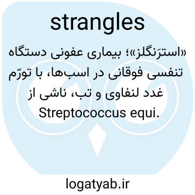 «استرَنگلز»؛ بیماری عفونی دستگاه تنفسی فوقانی در اسب‌ها، با تورّم غدد لنفاوی و تب، ناشی از Streptococcus equi.