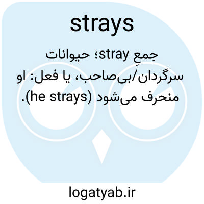 جمعِ stray؛ حیوانات سرگردان/بی‌صاحب، یا فعل: او منحرف می‌شود (he strays).