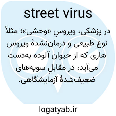 📌 ویروسی، مانند هاری، که از حیوانی که به طور طبیعی آلوده شده است به دست می‌آید و معمولاً برخلاف سویه ضعیف‌شده آزمایشگاهی، بیماری‌زا است.