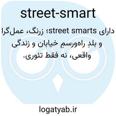 دارای street smarts؛ زرنگ، عمل‌گرا و بلدِ راه‌ورسمِ خیابان و زندگی واقعی، نه فقط تئوری.