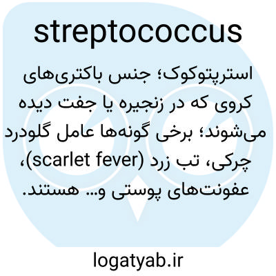 📌 هر یک از چندین باکتری کروی یا بیضی شکل از جنس استرپتوکوک که به صورت جفت یا زنجیرهای یافت میشوند و گونههای خاصی از آنها برای انسان بیماریزا هستند و باعث تب مخملک، التهاب لوزه و غیره میشوند.