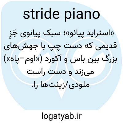 📌 سبکی از نوازندگی پیانوی جاز که در آن دست راست ملودی را مینوازد در حالی که دست چپ یک نت باس یا اکتاو را روی ضرب قوی و یک آکورد را روی ضرب ضعیف مینوازد، که در دهه ۱۹۲۰ در هارلم، تا حدودی از نوازندگی پیانوی رگتایم، توسعه یافت.