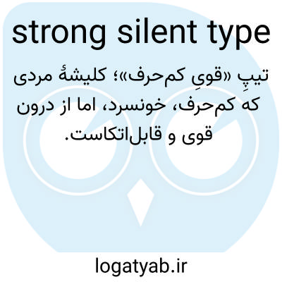 📌 مردی اهل عمل که محتاط است و احساساتش را پنهان میکند. برای مثال، پائولا همیشه تیپ قوی و ساکت را به مردان برونگرا ترجیح میداد. این عبارت که تقریباً هرگز برای زنان استفاده نشده، ممکن است منسوخ شده باشد. [حدود ۱۹۰۰]