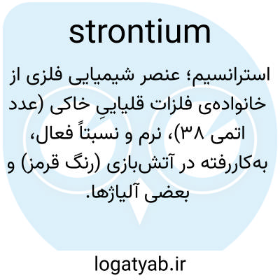 استرانسیم؛ عنصر شیمیایی فلزی از خانواده‌ی فلزات قلیاییِ خاکی (عدد اتمی ۳۸)، نرم و نسبتاً فعال، به‌کاررفته در آتش‌بازی (رنگ قرمز) و بعضی آلیاژها.