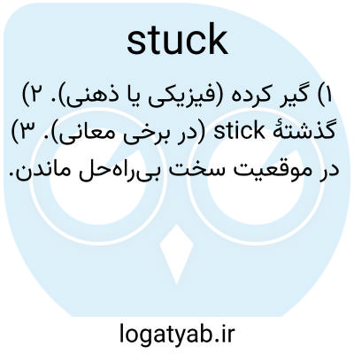 ۱) گیر کرده (فیزیکی یا ذهنی). ۲) گذشتهٔ stick (در برخی معانی). ۳) در موقعیت سخت بی‌راه‌حل ماندن.