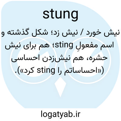 نیش خورد / نیش زد؛ شکل گذشته و اسم مفعولِ sting؛ هم برای نیش حشره، هم نیش‌زدن احساسی («احساساتم را sting کرد»).