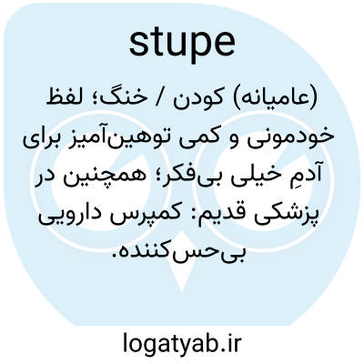 (عامیانه) کودن / خنگ؛ لفظ خودمونی و کمی توهین‌آمیز برای آدمِ خیلی بی‌فکر؛ همچنین در پزشکی قدیم: کمپرس دارویی بی‌حس‌کننده.