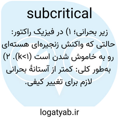 📌 فیزیک، مربوط به حالت، مقدار یا کمیتی که کمتر از حد بحرانی است، به ویژه برای تودهای از ماده رادیواکتیو.