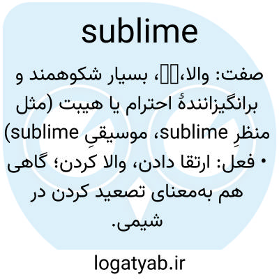 صفت: والا،崇高، بسیار شکوهمند و برانگیزانندهٔ احترام یا هیبت (مثل منظرِ sublime، موسیقیِ sublime) • فعل: ارتقا دادن، والا کردن؛ گاهی هم به‌معنای تصعید کردن در شیمی.