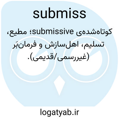کوتاه‌شده‌ی submissive؛ مطیع، تسلیم، اهل‌سازش و فرمان‌بَر (غیررسمی/قدیمی).