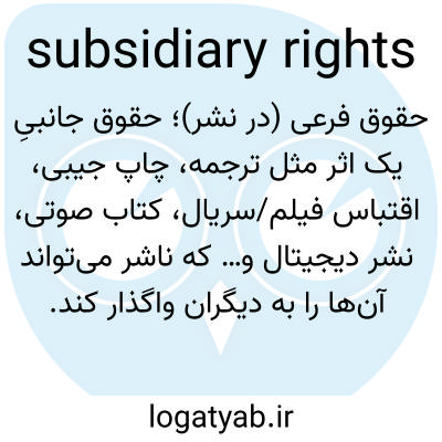حقوق فرعی (در نشر)؛ حقوق جانبیِ یک اثر مثل ترجمه، چاپ جیبی، اقتباس فیلم/سریال، کتاب صوتی، نشر دیجیتال و… که ناشر می‌تواند آن‌ها را به دیگران واگذار کند.