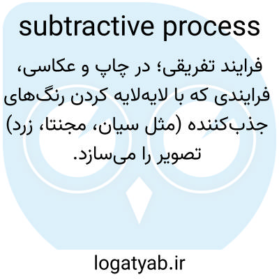 فرایند تفریقی؛ در چاپ و عکاسی، فرایندی که با لایه‌لایه کردن رنگ‌های جذب‌کننده (مثل سیان، مجنتا، زرد) تصویر را می‌سازد.
