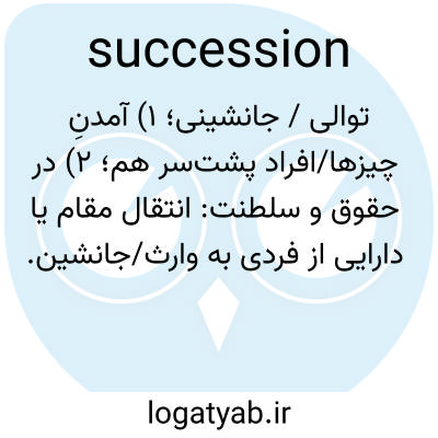 📌 حق، عمل یا فرآیندی که به موجب آن یک شخص جانشین منصب، رتبه، دارایی یا موارد مشابه دیگری می‌شود.